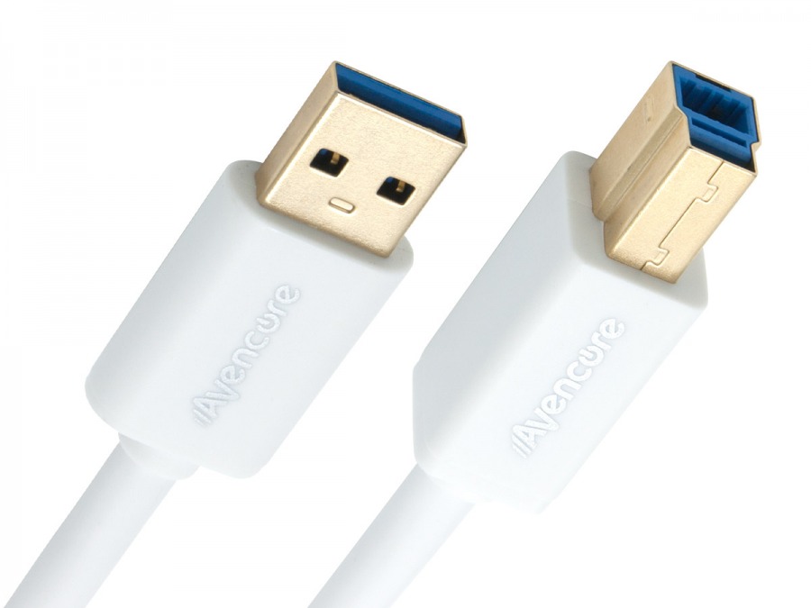 The Avencore Crystal Series USB 3.0 range wouldn't be complete without the Type-B cable, even though it's rare to find hardware which uses this bulky plug type. Generally reserved for commercial and industrial strength peripherals like high-speed multi-function printers and plotters, it's not the most popular cable in the home with only a few HDD and NAS devices opting for this socket.
