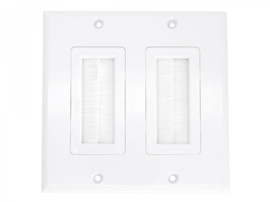 It's always a better bet to run a single cable than go through couplers and adapters, however with conventional wall plates your options are limited. But thanks to this neat dual port (double gang) brushed-entry wall plate, you can thread just about any cable through it and maintain and un broken connection from start to finish.