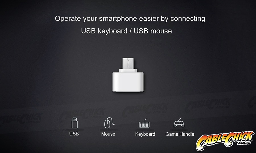 You'll wonder how you ever lived without this tiny, but supremely handy little adapter. Just plug the Micro USB end into your phone or tablet, and you have just added standard USB port functionality to your device! Just remember that on some Android phones you'll need to select on the phone how you want the connected USB devices to be handled (usually done by swiping down at the top of the screen, and selected the USB connection option).