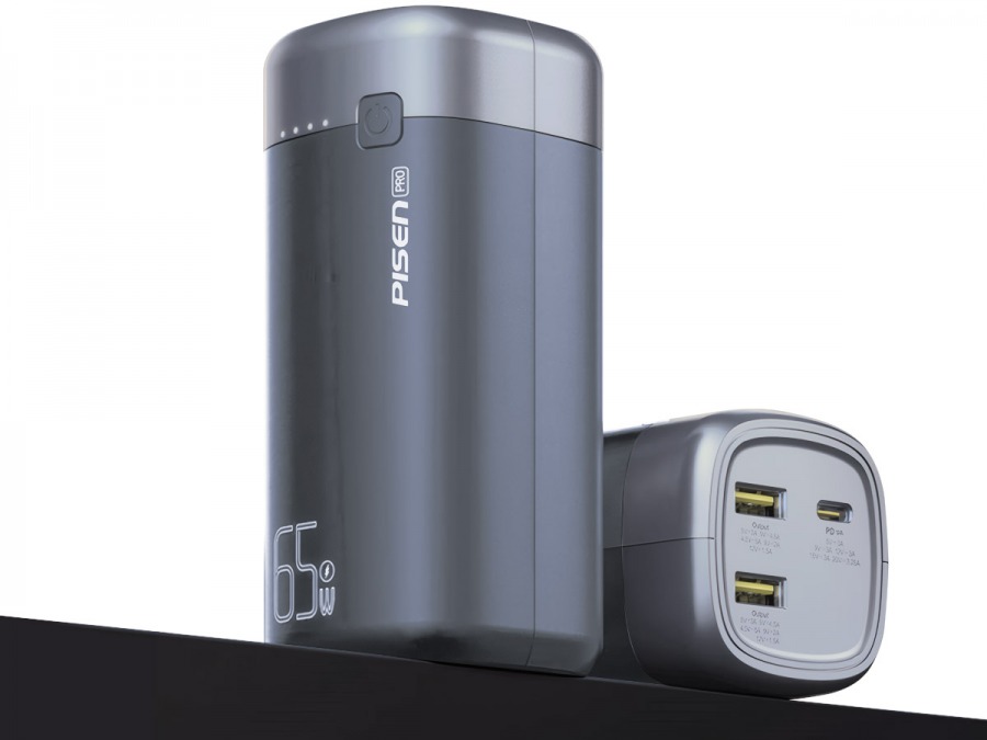 The Pisen Pro 20,000mAh High-Capacity Power Bank works as a mobile battery solution for smartphones, laptops and wearables - anything that needs charging at up to 65W can charge up at high speed from its internal battery.